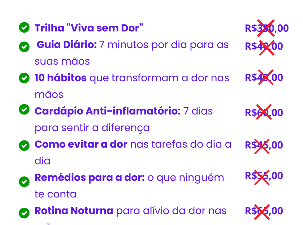 Investir apenas R$67 para aliviar a dor nas mãos através de um protocolo comprovado e embasado nos mais recentes estudos científicos.